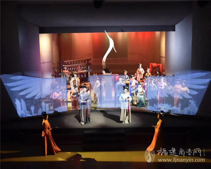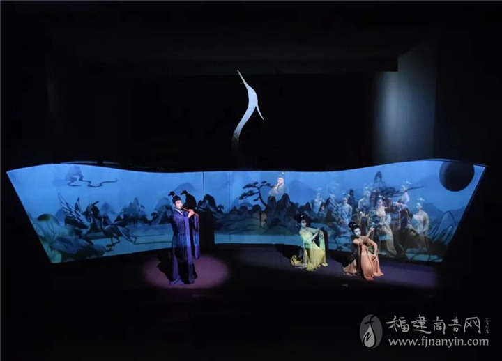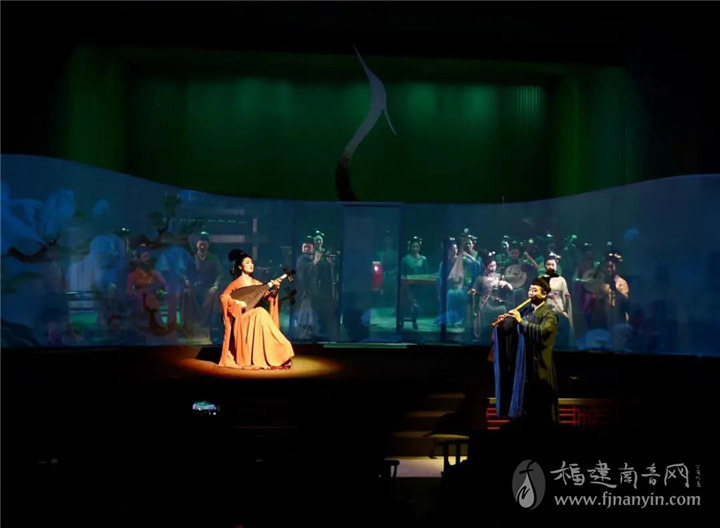 南音《白鹭赋》屏幕上及其前后与台下演奏,科步身影,有着一种朦胧美,新颖别致,美妙绝伦。不是吗?请君一览无憾。